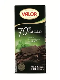 Горький 70% шоколад со вкусом мяты. Без глютена, 100 г