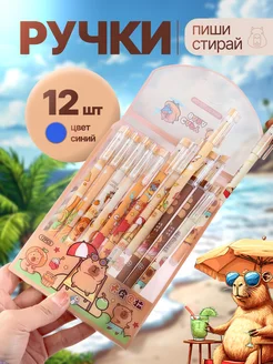 Ручки пиши стирай гелевые синие, 12 шт Капибара