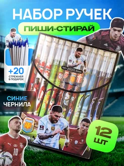 Ручки пиши стирай гелевые синие, 12 шт футбол+20 стержней