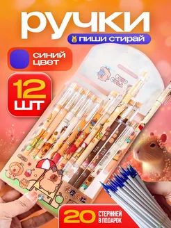Ручки пиши стирай гелевые синие, 12 шт Капибара+20 стержней