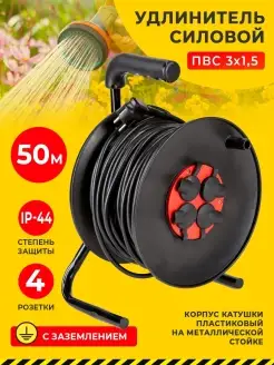 Удлинитель на катушке силовой с заземлением на 4 розетки