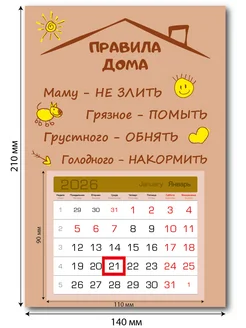 Календарь 2026 Магнитный Настенный Правила дома, 140х210мм