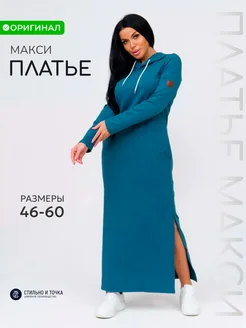 Платье спортивное длинное с капюшоном трикотажное