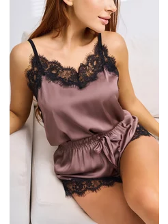 Костюм домашний со штанами и блузкой пижама шелковая летняя