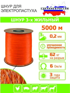 Шнур электропастуха, 3 жилы по 0,2 мм, 5000