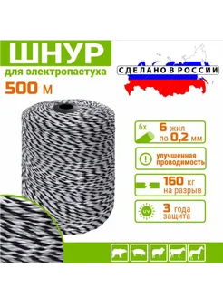 Шнур 1000м, для электропастуха, 6 жил по 0,2мм, 190кгс