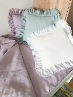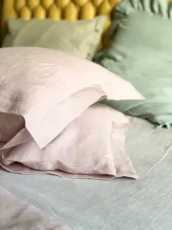 Льняная ночная сорочка комбинация с кружевом и оборкой