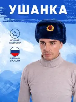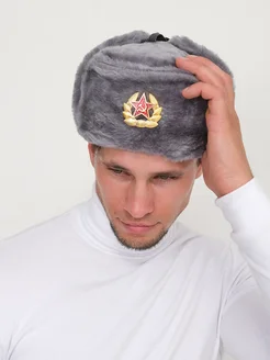 Шапка ушанка мужская женская СССР военная с кокардой зимняя