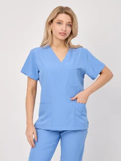 Костюм медицинский с прямыми брюками и блузой на пуговицах