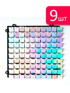 Панели с квадратными пайетками, Серебро Радуга, 9 шт
