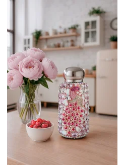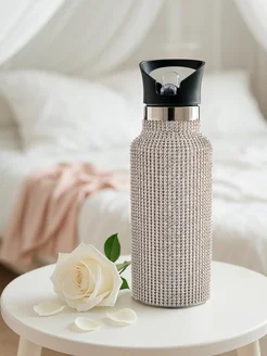 Термос, бутылка со стразами для чая, для воды