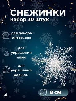 Снежинки на елку для рукоделия на окна (d=8см) 30 штук