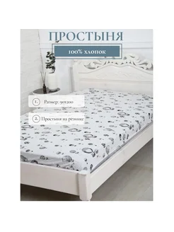 Простынь на резинке "узор-перо" 90х200