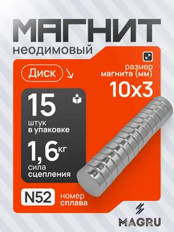 Неодимовый магнит диск 10х3 мм 15шт