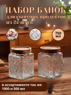 Банка для сыпучих продуктов стеклянная 750мл крышка дер 2шт