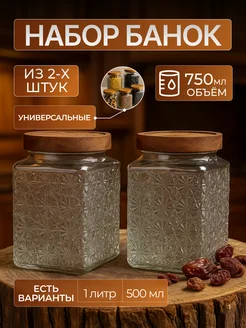 Банки для сыпучих продуктов стеклянная 750мл крышка дер 2шт
