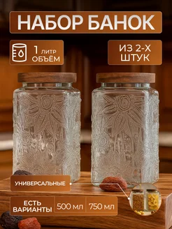 Банка для сыпучих продуктов стеклянная крышка дерево 1л 2шт
