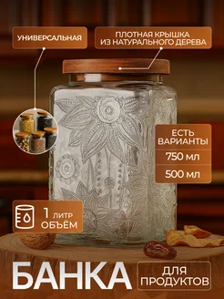 Банка для сыпучих продуктов стеклянная крышка дерево1 л 1шт