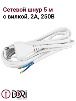 Сетевой шнур 5м с вилкой (250В, 2А), белый