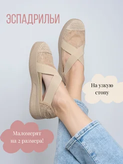 Слипоны летние текстильные эспадрильи с кружевом и резинкой