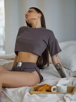 Пижама с укороченной футболкой и шортами домашний костюм