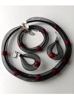 Комплект украшений подвеска, браслет и серьги с регилином