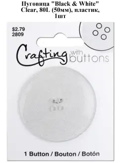 Пуговица "Black & White" Clear, 80L (50мм), пластик, 1шт, бе…