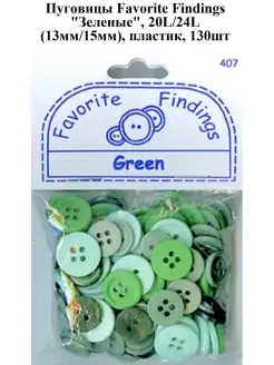 Пуговицы Favorite Findings "Зеленые", 20L 24L (13мм 15мм), п…