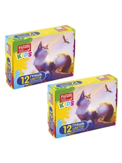 Гуашь 2 упаковки по 12 цвeтов FORUM "Зверята" по 10 мл