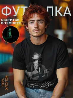 Футболка с принтом Виктора Цоя с гитарой светящаяся