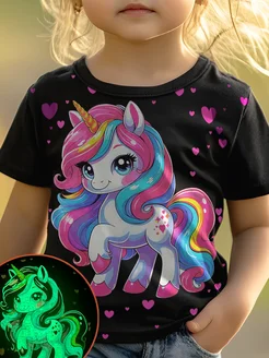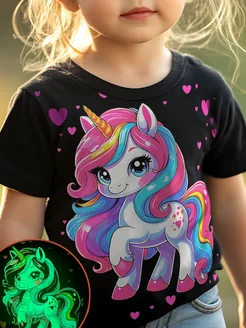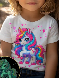 Футболка с принтом Единорог с сердечками