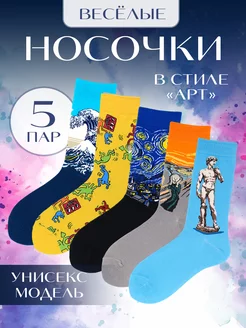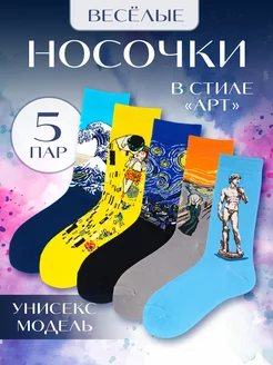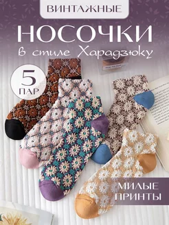 Носки женские длинные набор 6 пар с цветным принтом рисунком