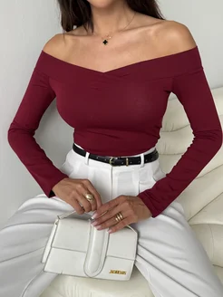 Лонгслив с открытыми плечами вечерний облегающий