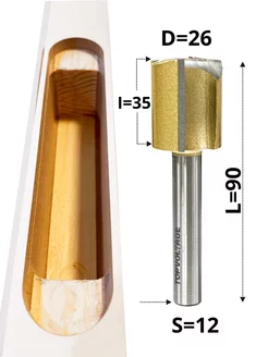 Фреза пазовая прямая для замков и петель 26х35х90 хв 12 мм