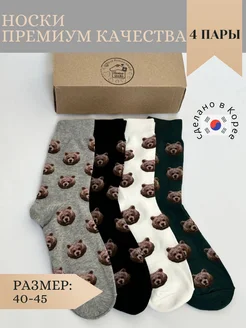 Носки мужские с принтом Медведи подарочный набор 4 пары