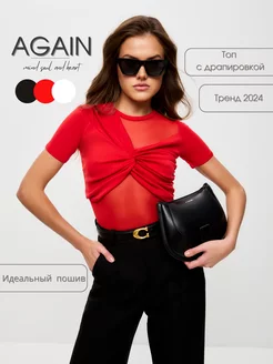 Топ футболка с драпировкой асимметричный