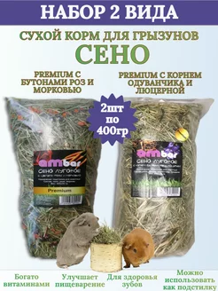 Сено Бутоны Роз и Морковь+Одуванчик и Люцерна-2х400гр