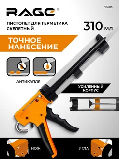 Пистолет для герметика и клея усиленный скелетный 2в1 310 мл