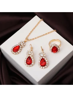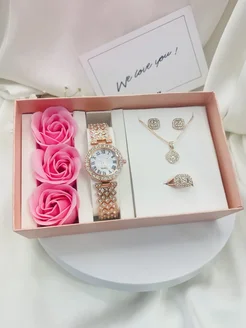 Комплект в коробке серьги+кулон +цепочка +кольцо+часы