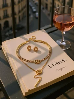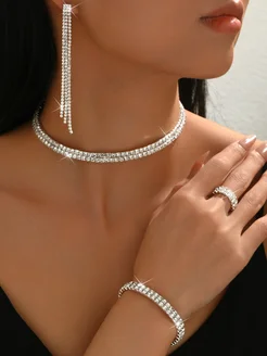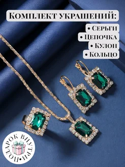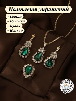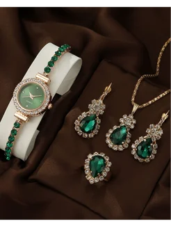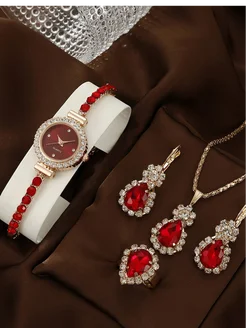 Комплект серьги+кулон +цепочка +кольцо+часы