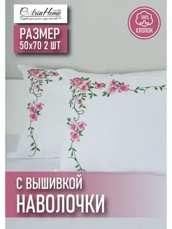 Набор наволочек 50x70 2 шт бязь белые вышивка розы