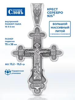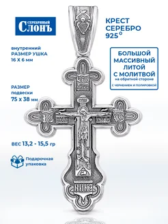 Крест серебряный 925 Большой 7,5см с Молитвой