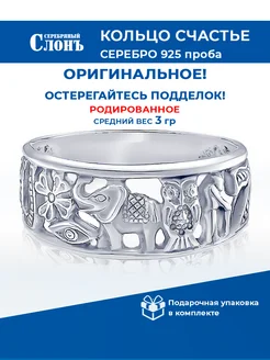 Серебряное кольцо 925 Счастье Удача 7 символов