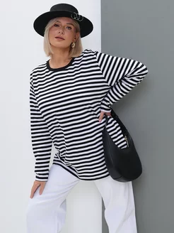 Лонгслив оверсайз в полоску тельняшка больших размеров