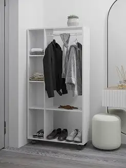 Вешалка для одежды деревянная напольная Стойка на колесиках