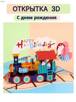 Открытка с днем рождения 3D "Паровозик"