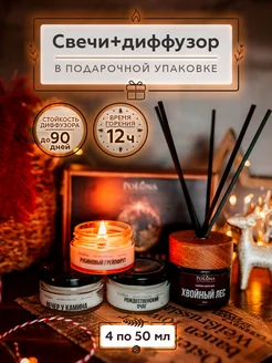 Ароматические свечи 3 по 50 мл и Диффузор 50 мл Набор