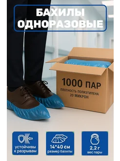 Бахилы 1000 пар одноразовые прочные 2000шт 2,2гр. м