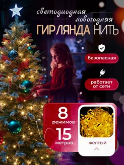 Гирлянда нить светодиодная 15 метров новогодняя желтая