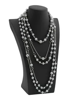 Бусы длинные с серым жемчугом на цепочках